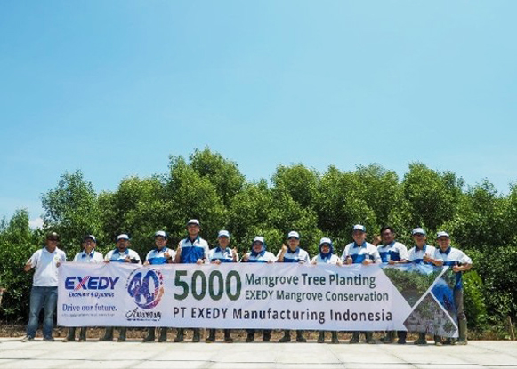 On August 30, 2025, EXEDY Manufacturing Indonesia (EMI) has planted 5000 of mangrove trees as one of the company’s Corporate Social Responsibility program, as well as celebrating the company’s 40th anniversary. The planting area located at Cilamaya village on north coast of Karawang, 60 kilometres from the company. EMI collaborated with Cipta Pesona Desa, a local community who work in conservation and sustainable use of natural environment which had been successfully developed a 12 hectares conservation area from 0 to 248,000 trees to date through collaboration with various stakeholder, such as government, corporation, and common public.